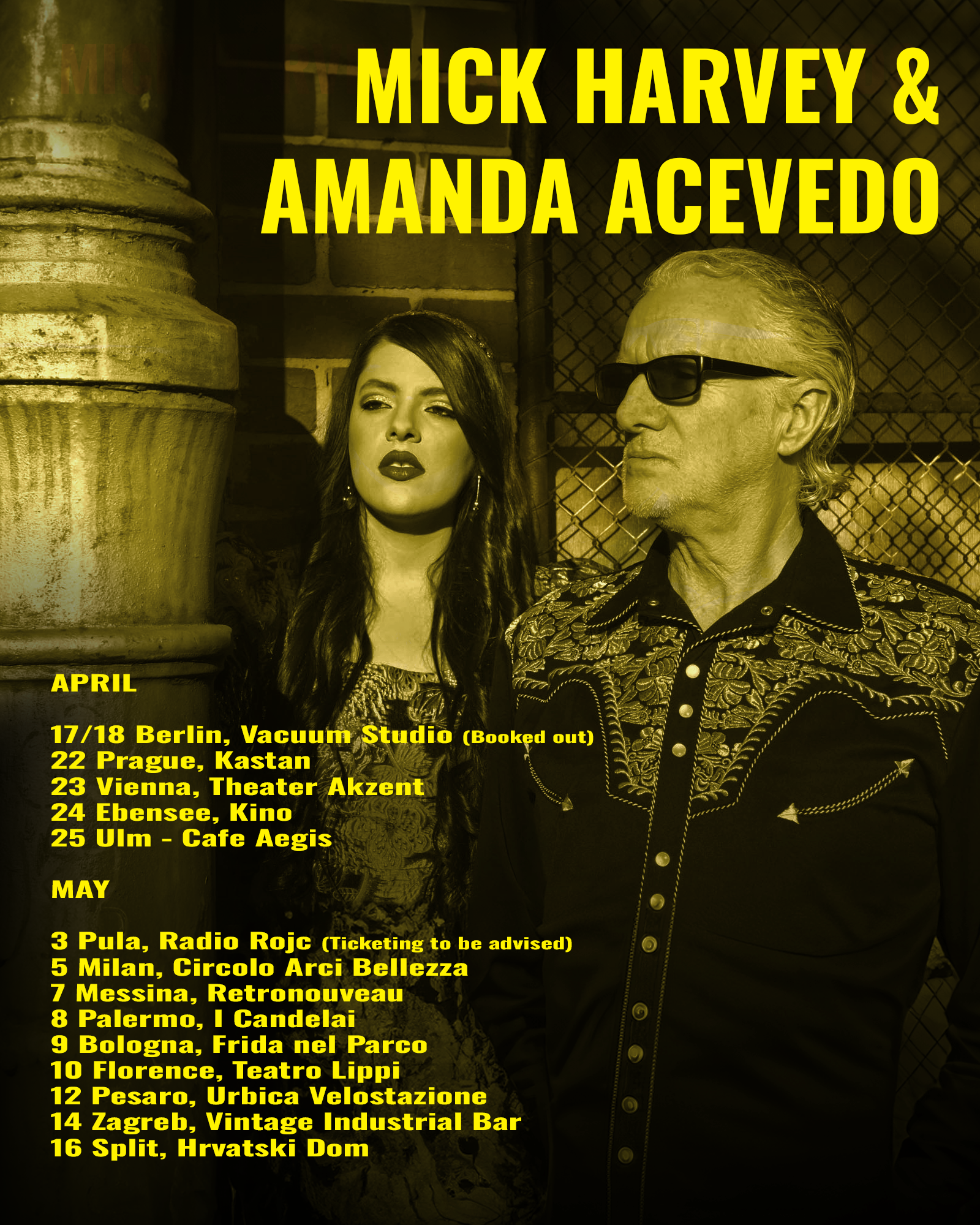 9 April - Vienna (AT) - Rote Bar https://ticketgretchen.com/events/wien/wien/vt-rote-bar/mick-harvey-amanda-acevedo-15774/#performance-15774-53881